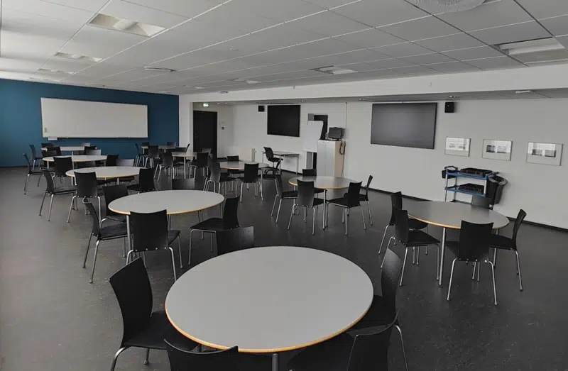 - Plads til max 60 personer i Café-opstilling med runde borde (10x6)